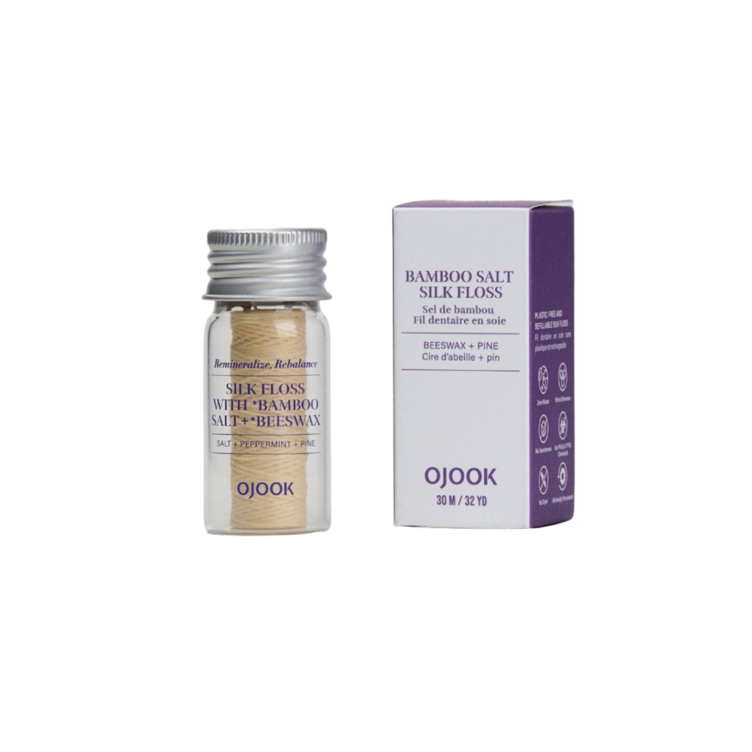 Elevate your oral care with OJOOK’s Silk Floss Full, crafted from 100% biodegradable Italian silk. This gentle, durable floss effectively removes debris while being kind to your gums and enamel, thanks to healing ingredients like Korean bamboo salt, ethical beeswax, and hydroxyapatite. Packaged in a refillable glass bottle and FSC-certified carton, it’s a sustainable, plastic-free, and zero-waste choice that supports both a healthy smile and a greener planet. Made in Italy and travel-friendly, it’s perfect for everyday use anywhere.